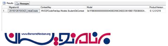 فعال سازی Migration به طور خودکار جدول جدید MigrationsHistory را در پایگاه داده اضافه می کند. MigrationId منحصر به فرد بوده و دقیقا شبیه نام migration شما در برنامه می باشد. ContextKey مدل Context مناسب را نشان می دهد.