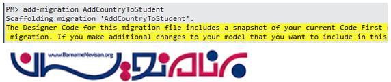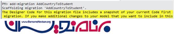 دستور زیر را در Package Manager Console برای اضافه کردن migration بنویسید: