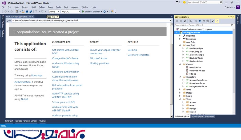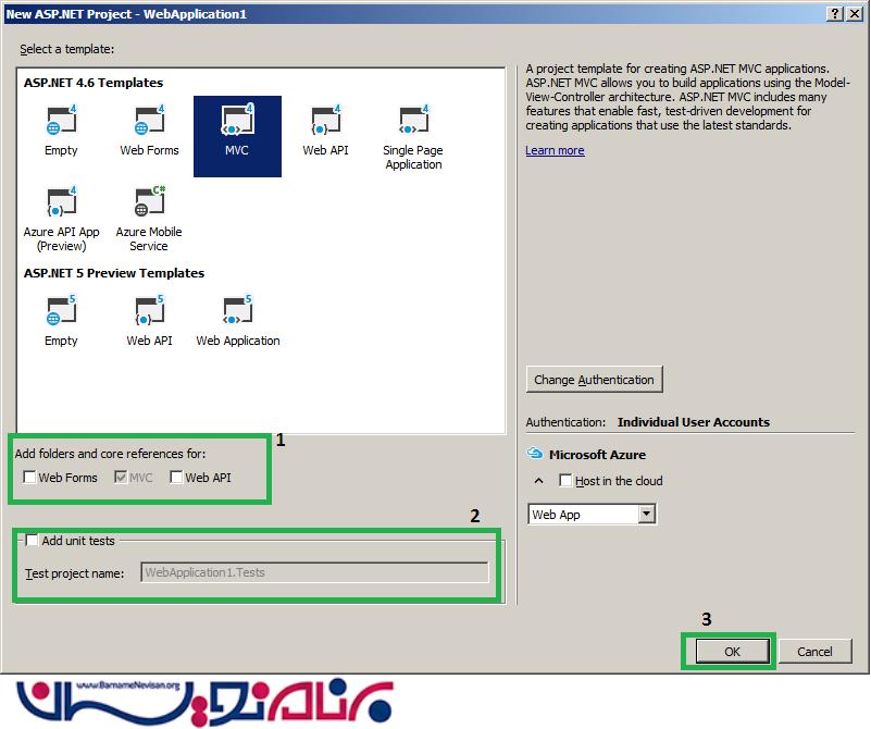 نحوه ساخت پروژه جدید MVC در ویژوال استادیو 2015