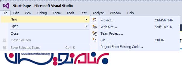 ویژوال استادیو را باز کرده و مانند تصویر زیر عمل می نماییم.(File>New>Project)