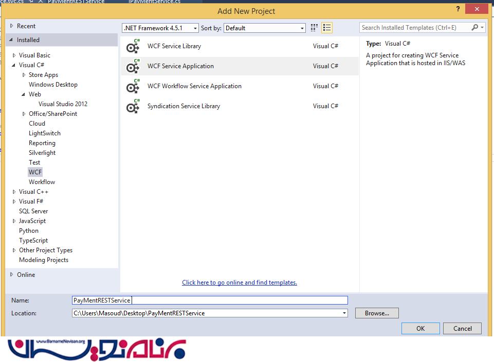 3-یک سرویس WCF به نام PayMentRESTService ایجاد کنید.