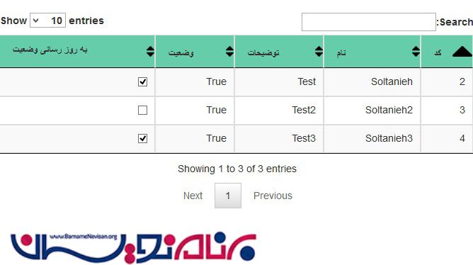 کد jQuery برای برای اتصال داده ها در DataTable به صورت زیر می باشد.
