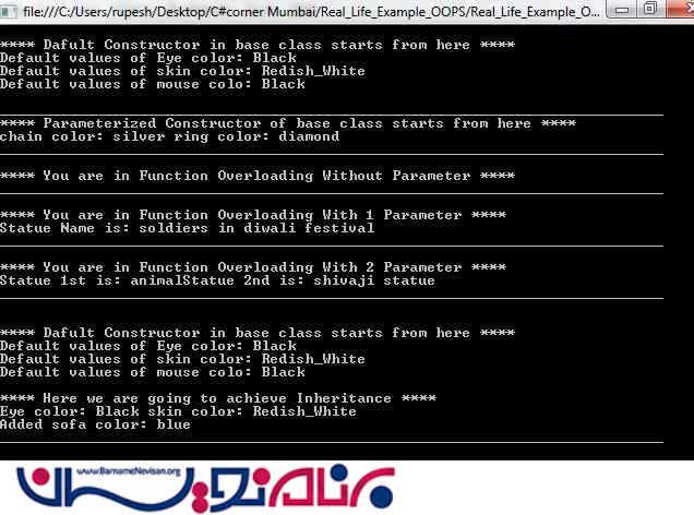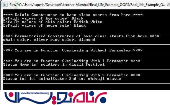 -در مثال ما سازنده پیشفرض با مقادیری مانند رنگ چشم، رنگ پوست تنظیم می شود.