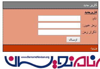 با کلیک بر روی قسمت کاربر جدید بخش "ورود" بصورت آکاردئونی پایین رفته و بخش "کاربر جدید" ظاهر می شود.