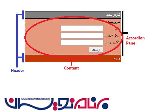 هر کنترل AccordionPane یک قالب برای محتوا و header خود دارد.