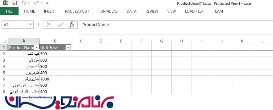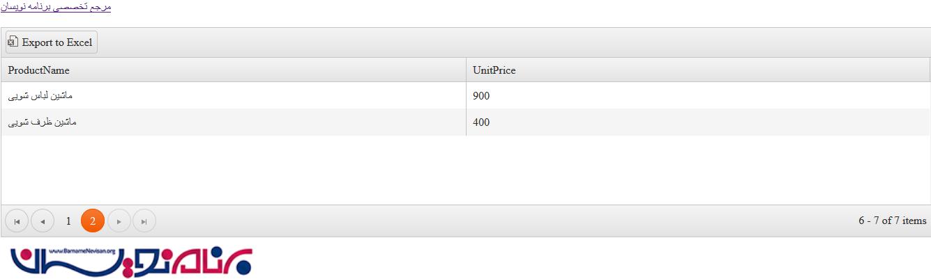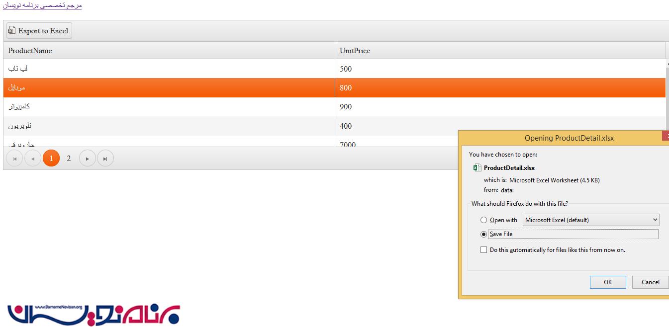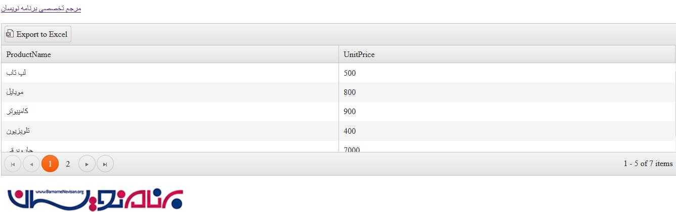 ارسال اطلاعات به Excel با استفاده از Kendo در Entity Framework