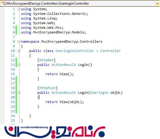 همانطور که دیدی بعد از تغییر ActionResult مربوط به UserLoginController دو متد ایجاد کردیم، یکی برای GET و دیگری برای POST.