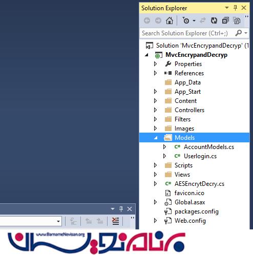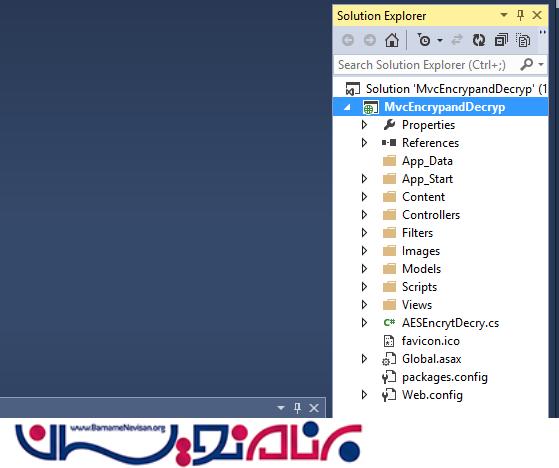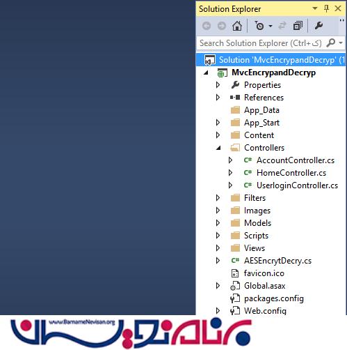 یک پروژه جدید در ASP.NET MVC ایجاد کنید و نام آن را MvcEncrypandDecryp قرار دهید. solution آن مانند تصویر زیر می شود: