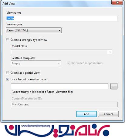برای اضافه کردن View بر روی ActionResult راست کلیک کرده و Add View را بزنید، مانند شکل زیر: