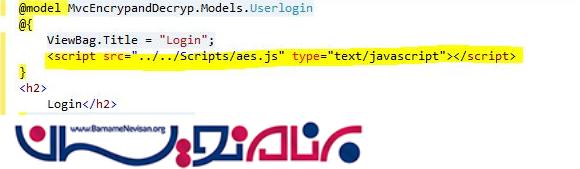 بعد از اضافه کردن aes.js آن را به صفحه Login در جایی رفرنس دهید که میخواهیم داده را رمزنگاری کنیم: