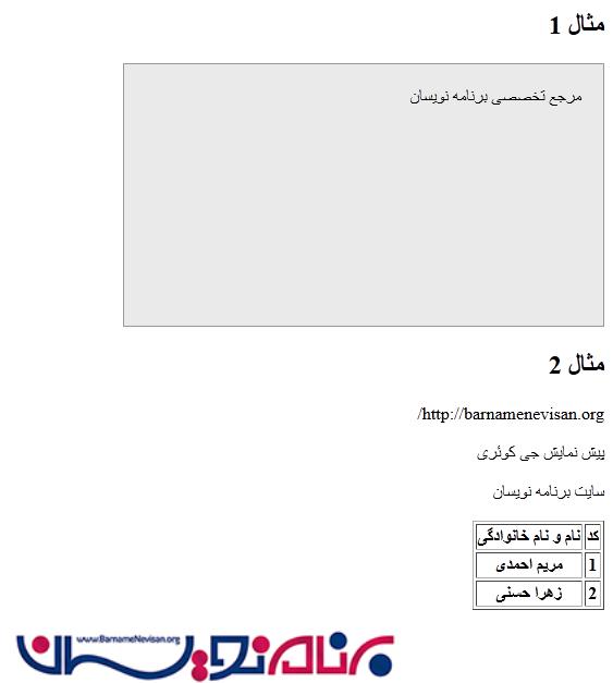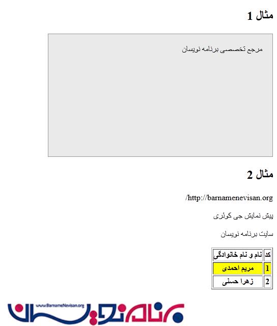 برای مثال 1 از کد زیر استفاده می شود:
