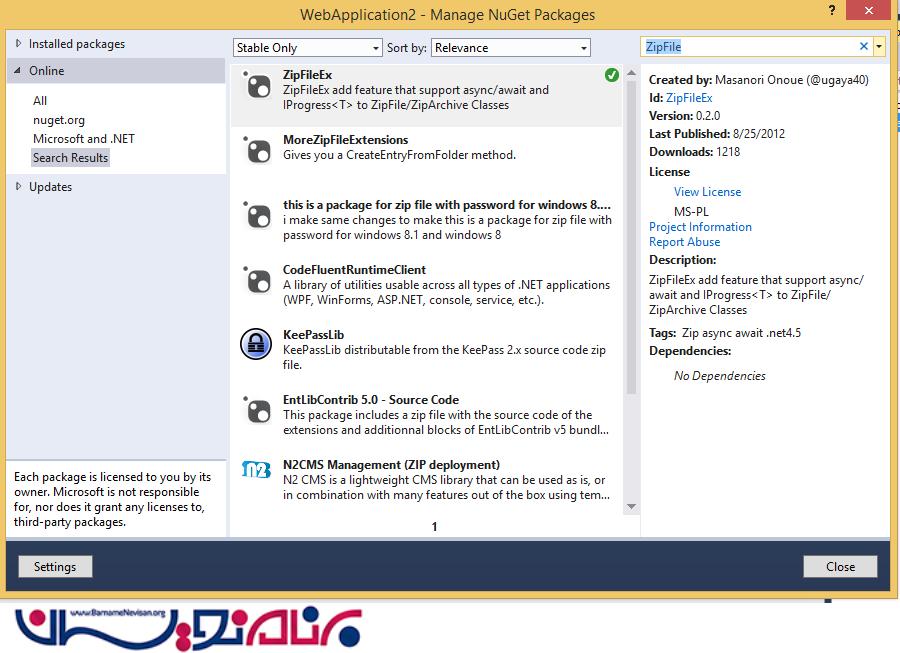 برای اینکه کلاس ZipArchive و ZipFile اضافه شود باید Nuget آن را به پروژه ی خود اضافه نمایید.