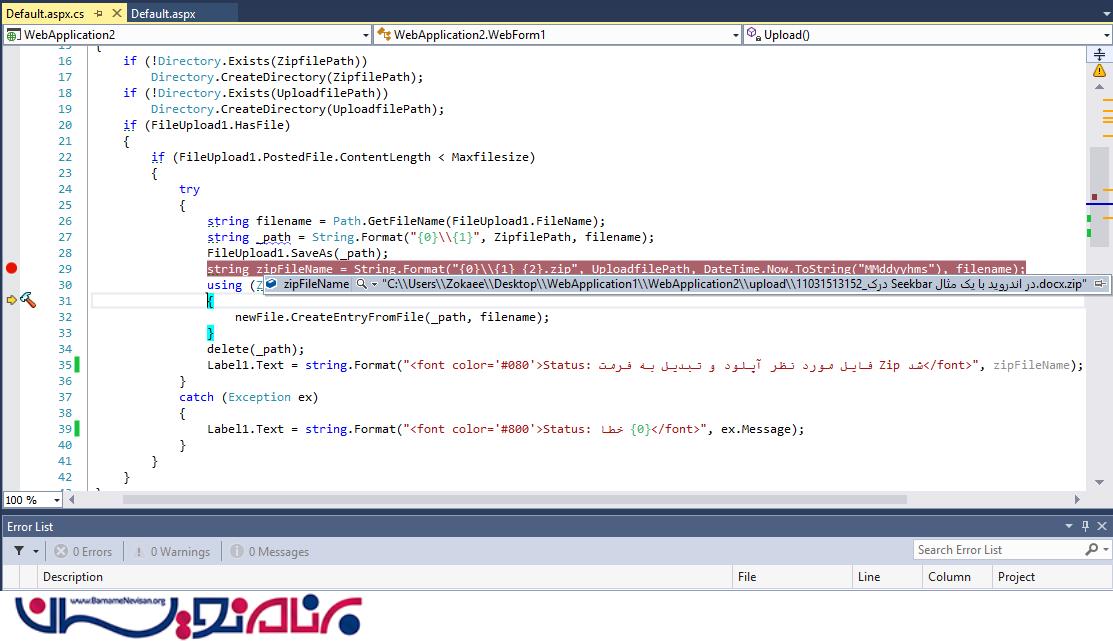 آپلود فایل و تبدیل به فرمت Zip در Asp.net