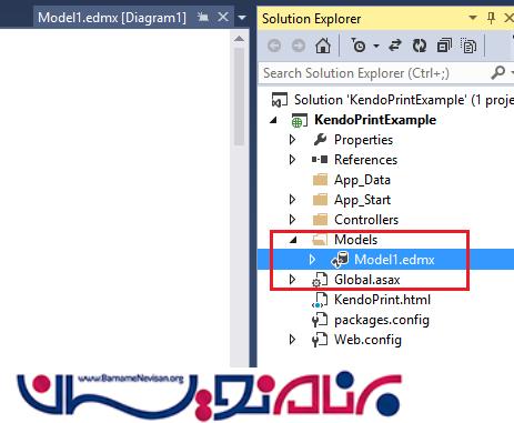 و بعد مدل آن را توسط Entity Framework به برنامه اضافه کنیم، بعد آن Solution به صورت زیر می شود: