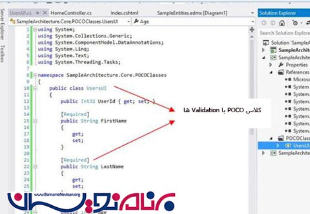 بنابر این یک پروژه ی جدید از نوع ClassLibarry اضافه نمایید، اضافه کردن یک کلاس در POCO به نامUserUI یکی دیگر از مزیت این کلاس ها استفاده از Validation در Model است.