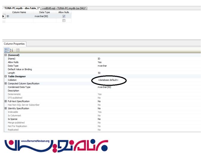 در شکل زیر می بینید که جدول ما Collation خود را از دیتابیس می خواند.