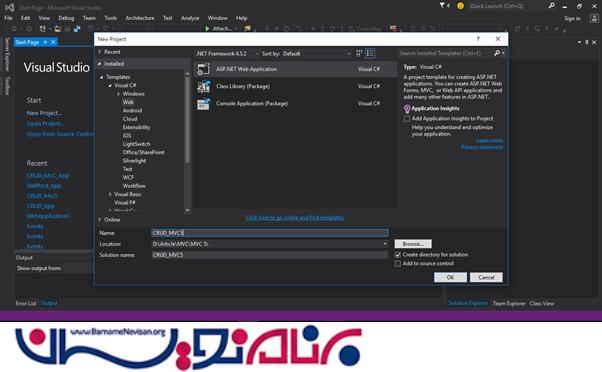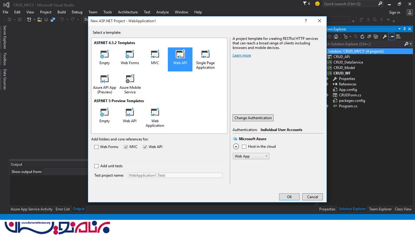 موقع ایجاد پروژه نوع پروژه را از نوع web api انتخاب نمایید: