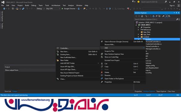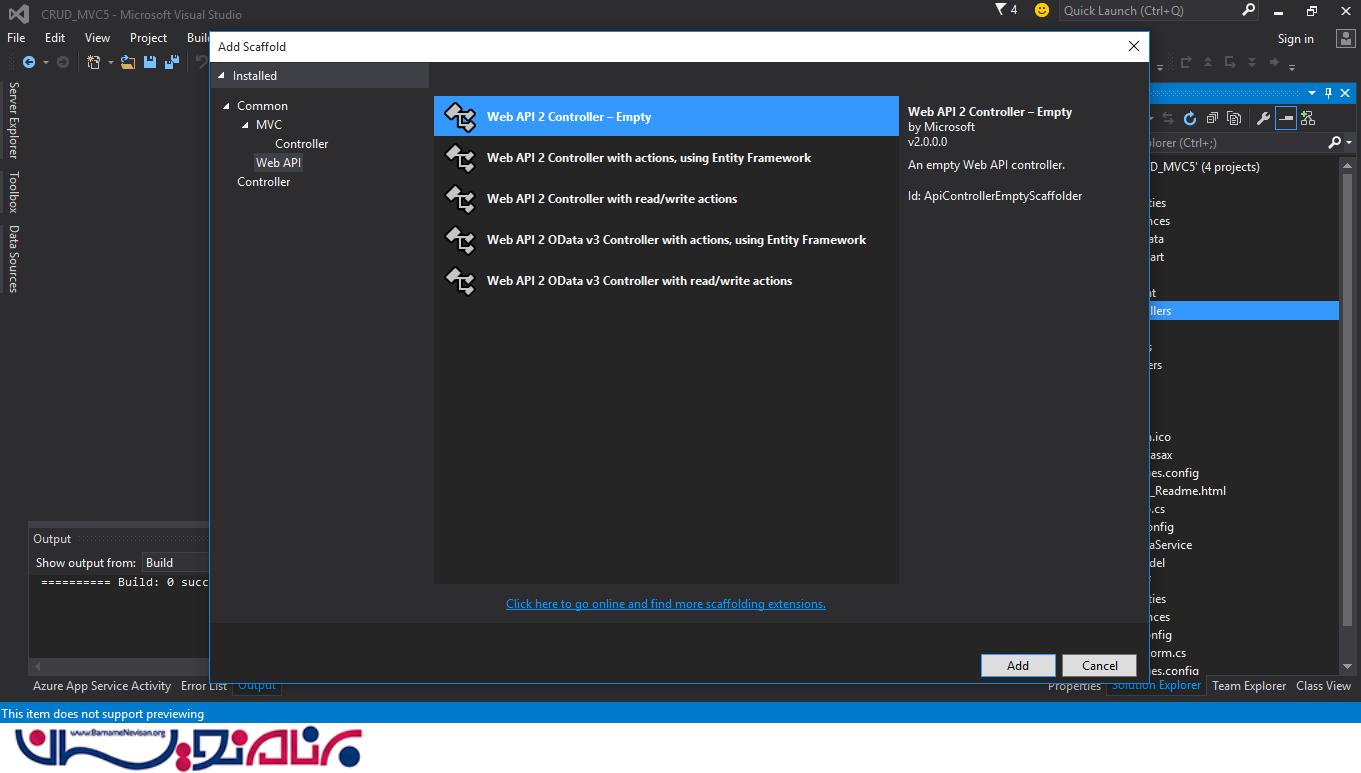 یک controller جدید بسازید و نوع آن را از نوع web api انتخاب نمایید.