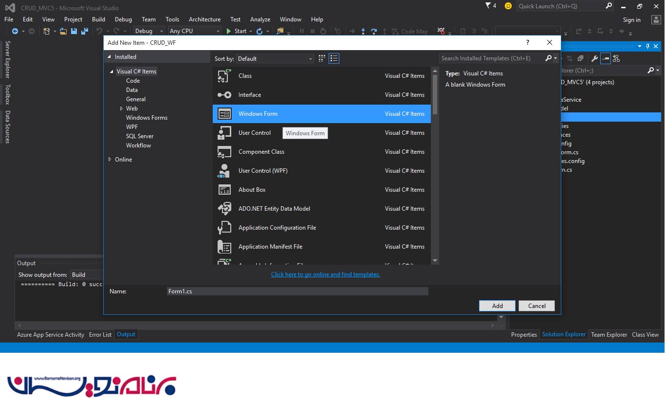 یک class libray به نام CRUD_DataService می سازیم، و دو کلاس ایجاد نمایید ، یکی از کلاس ها برای تعریف storded procedure و تعریف هر 5 متد در آن است و یکی از کلاس ها برای اتصال به پایگاه داده است.