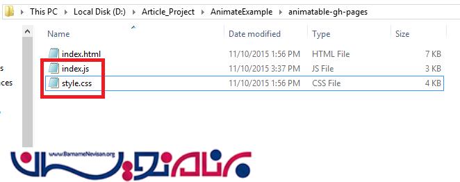 کلیه انیمیشن ها در فایل index.html موجود هستند و می توانید آنها را نیز مشاهده نمایید.(AnimateExample\animatable-gh-pages\Index.html)