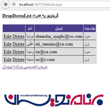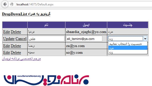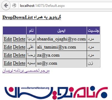 دوشنبه 25 آبان 1394در این مقاله نحوه استفاده از کنترل Dropdownlist در GridView را بررسی خواهیم نمود. همچنین انجام عملیات ویرایش و حذف برای هر فیلد GridView را خواهید آموخت.
