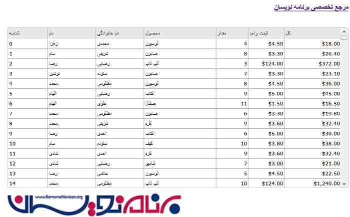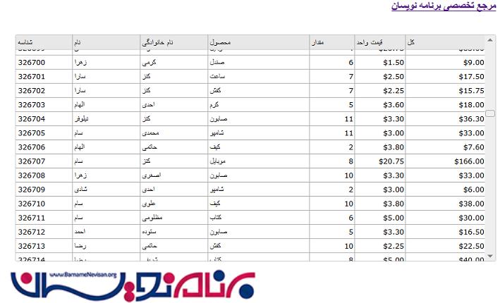 برای نشان دادن این نسخه نمایشی ما از کنترل jQWidget jQX Grid استفاده می کنیم.