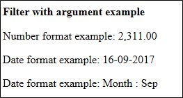فیلترهای AngularJs بسیاری از کاربرد های رایج مانند ارز ها و تاریخ را تحت پوشش قرار میدهد. یکی از استفاده های مشترک از فیلتر ، قالب بندی ان در مقدار دستور برای نمایش به کاربر است.
