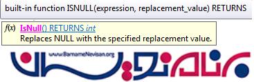 در این مثال از تابع ISNULL استفاده کردیم برای زمانی که اگر دیتایی برابر با NULL بود یک عبارت دلخواه به جای آن نمایش داده شود