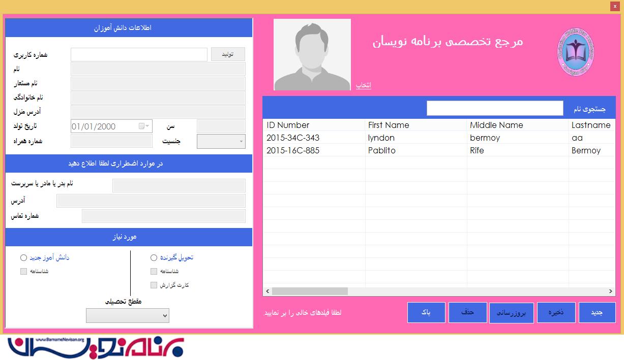 پروژه سیستم ثبت نام مدرسه یا آموزشگاه به زبان #C