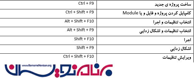 کلید های میان بر برای برنامه نویسی:این کلید ها بیشتر برای برنامه نویسی کاربرد دارد.