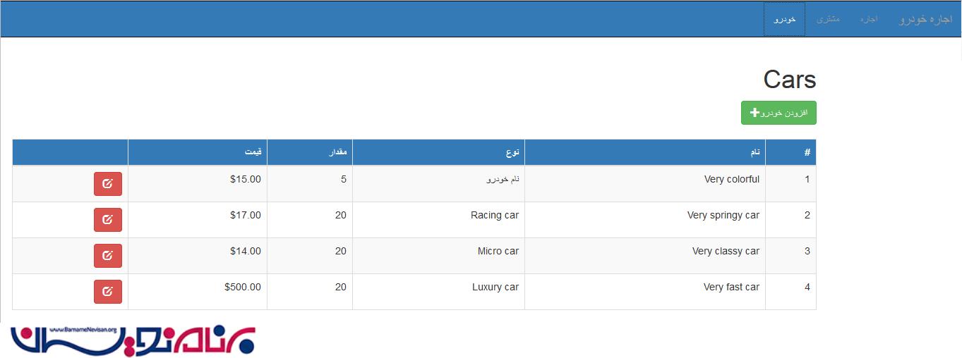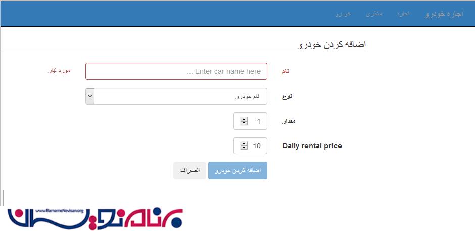 ایجاد یک نرم افزار مدیریت اجاره اتومبیل