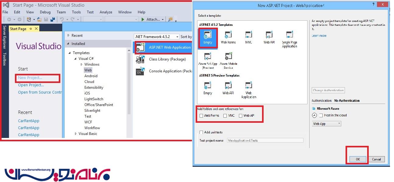 یک پروژه وب در ویژوال استودیو ایجاد کنید