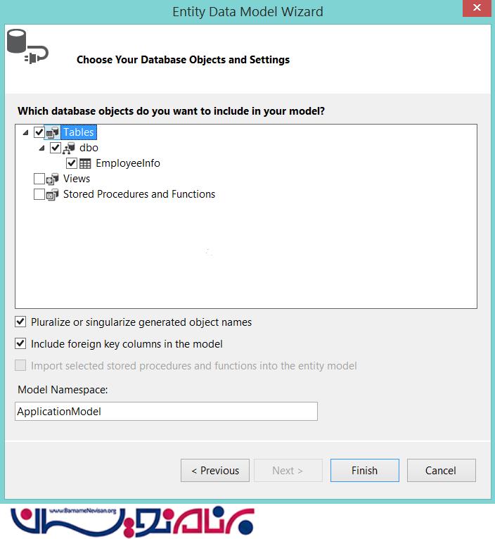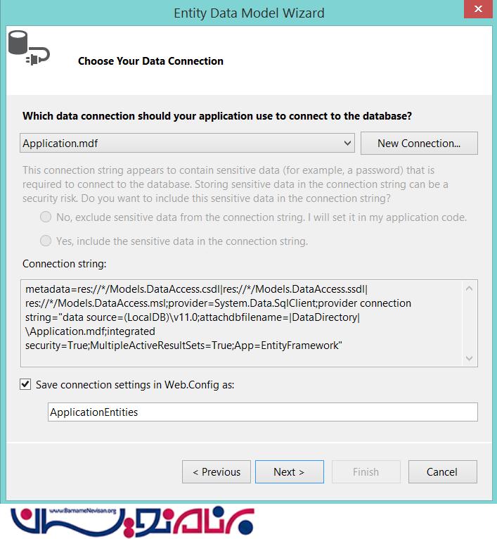داخل پوشه ی Model یک Ado.Net EF را وارد نمایید، و نام آن را دلخواه بگذارید، از طریق Wizard به پایگاه داده ی خود وصل شوید، در صفحه ی باز شده گزینه ی EF Designer From Database را انتخاب نمایید.
