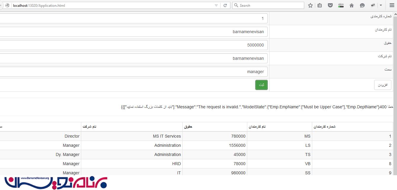 در کد بالا متد GET تمام کارمندان را برمی گرداند، و متد Post اطلاعات کارمندان را می گیرد.