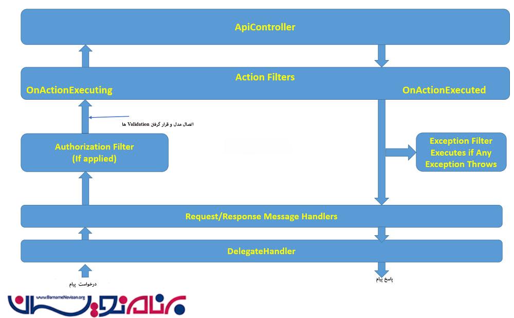 در web api ها بعد از پردازش پیام درخواست کنترل پیام اجرا میشود.