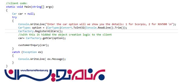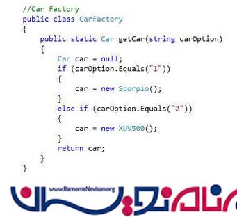 1. برای حل این مشکل توسط Factory ابتدا باید یک کلاس factory ایجاد کنیم.