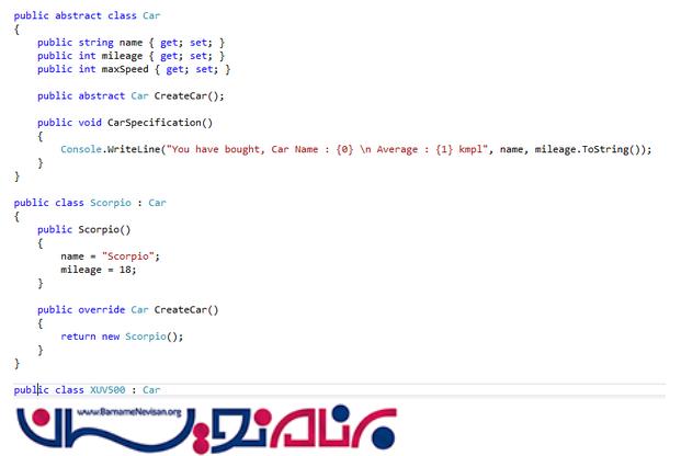 1. برای همین یک کلاس abstract از car ایجاد می کنیم که توسط دیگر ماشین ها پیاده سازی خواهند شد.
