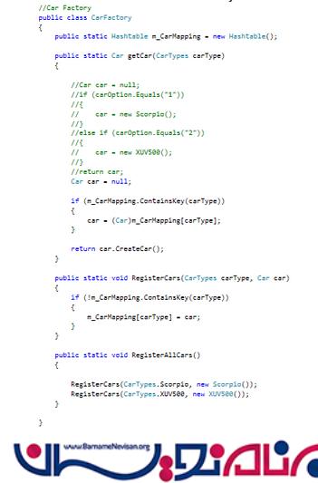 1. با این کد ماشین های بیشتری می توانند اضافه شوند که این در متد register از Factory انجام می گیرد.