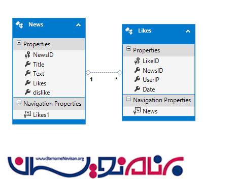 برای شروع یک بانک اطلاعاتی به نام CMS_DB که حاوی دو جدول به نام Like و News را ایجاد میکنیم