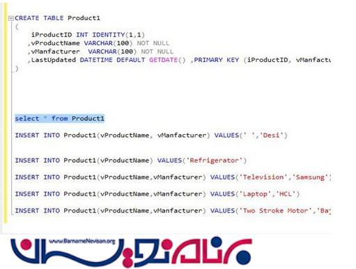 مثال : ما در اینجا از کوئری Insert استفاده کرده ایم: