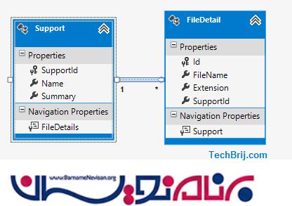 2- بعد از ایجاد پروژه در داخل دیتابیس یک دیتابیس ساده با دوجدول با فیلد هایی به شرح زیرو Relation بین آنها ایجاد کنید