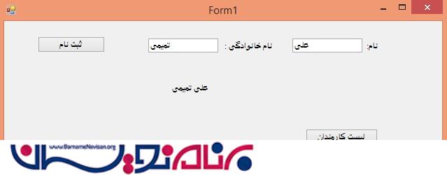 برای تست کردن ، هنگامی که بعد از پر کردن دو textbox بر روی دکمه ثبت نام کلیک میکنید خروجی به صورت زیر نمایش داده می شود.
