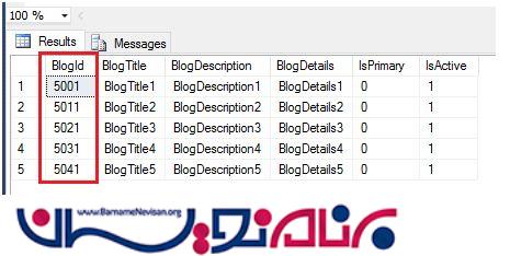 BlogId int IDENTITY(5001,10) primary key NOT NULL