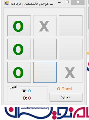 و همچنین در این سورس امکان بازی دوباره و جمع تعداد بردها و باخت ها را اعلام میکند.
