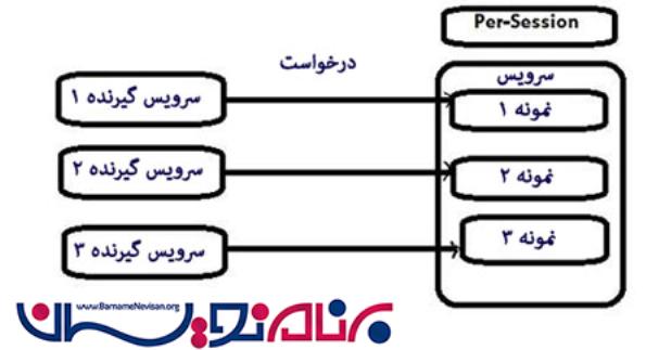 زمانی که سرویس خود را در حالت Per Session تنظیم میکنید ، سرویس گیرنده و سرویس با استفاده از نمونه Session تعامل دارند . در اینجا برای هر درخواست یک نمونه جدید ایجاد نخواهد شد. سرویس روی یک نمونه واحد از Session کار خواهد کرد.