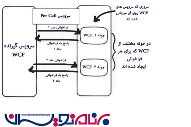 زمانی که حالت نمونه سازی سرویس خود را Per Call Service قرار می دهید، برای هر درخواست نمونه ای ایجاد می شود. به آن معناست که هر درخواست برای دسترسی به سرویس بعد از ایجاد نمونه ای جدید انجام خواهد شد. زمانی که سرویس گیرنده به داده بر میگردد ، نمونه ایجاد شده از بین می رود .