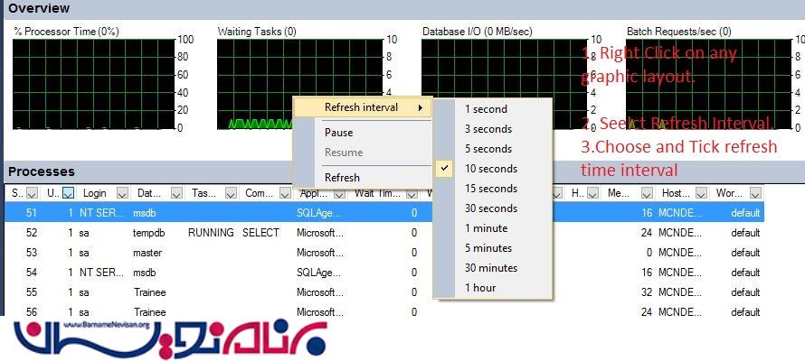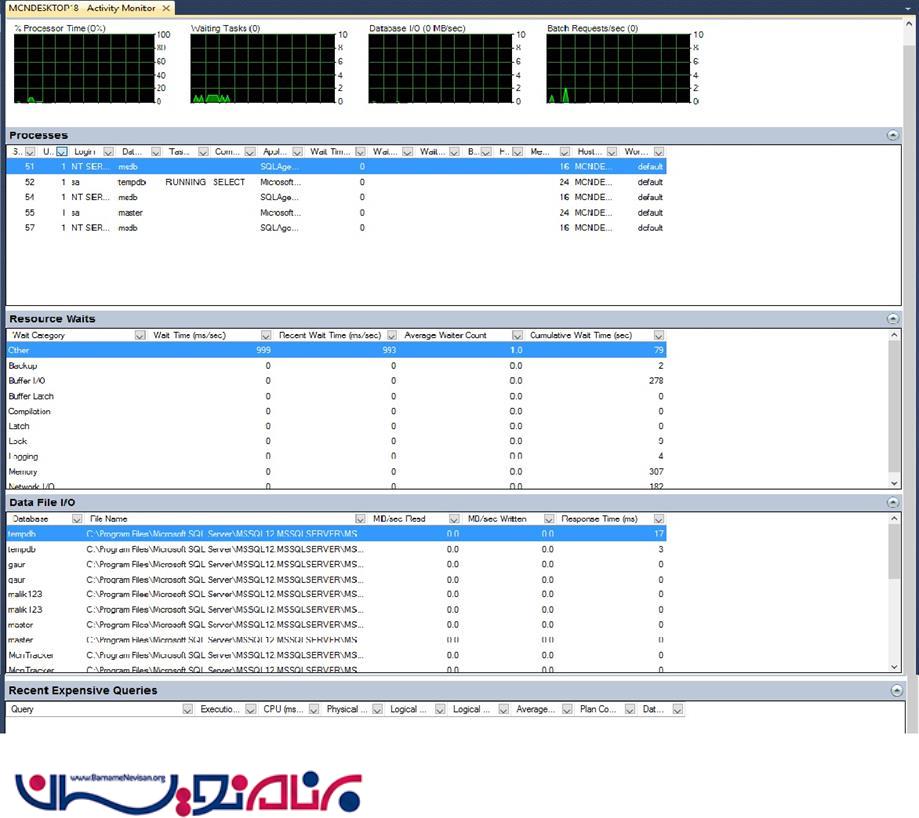 داشبورد Activity Monitor در sql server 2014