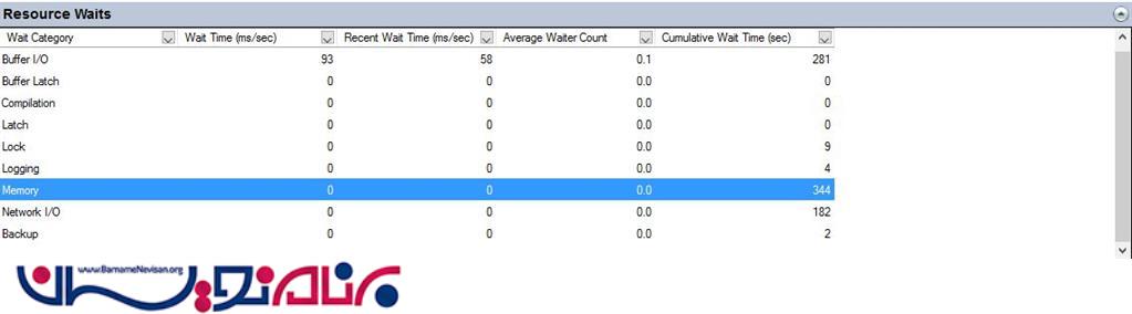 Resource Waits : وظایف مختلف در حال انتظار برای پردازنده ، I/O یا حافظه را نشان میدهد.