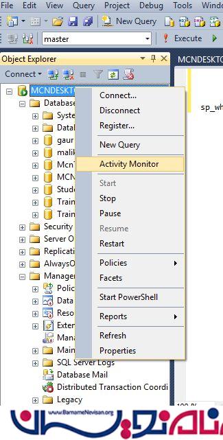 راه های مختلف برای باز کردن Activity Monitor در Sql Server Management studio 2014