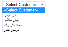 در قسمت رویداد Page Load کامپوننت DropDownList را با اطلاعات پایگاه داده پر می کنیم. CustomerId و مقادیر ستون Name از پایگاه داده با استفاده از SqlDataReader واکشی می شوند و به خصوصیت های DataTextField و DataValueField از کنترل DropDownList اختصاص می یابد.